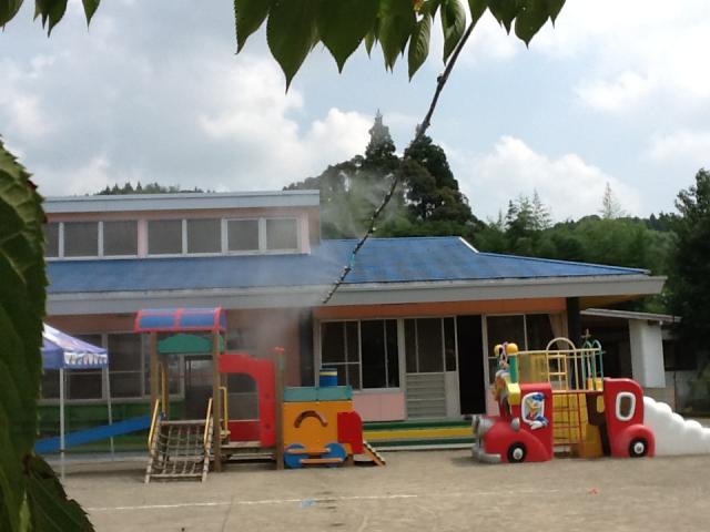 先日、某保育園に熱中症対策ミストを設置してきました~ 。